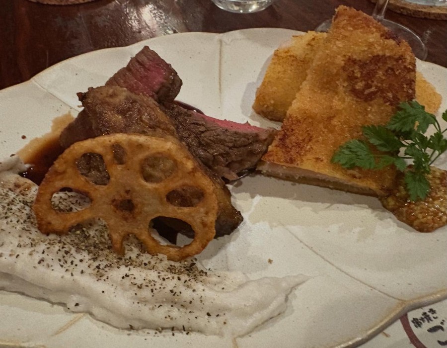 千代幻豚ロースカツレツ 国産牛シャトーブリアンとフォアグラ(マッシュ里芋と赤ワインソース)